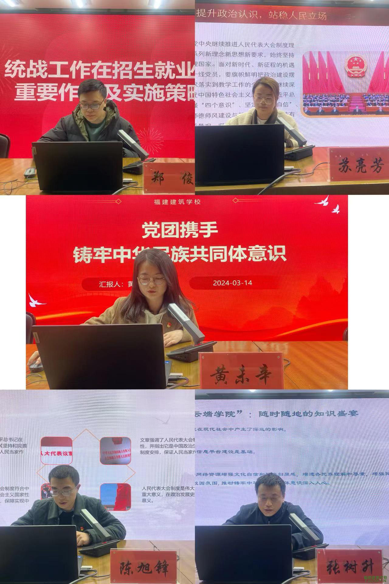 校党委书记郑芳强调,一要深入学习全国两会期间习近平总书记重要讲话精神,并与总书记对福建工作,特别是对教育工作的一系列重要讲话、重要指示精神紧密结合起来,融会贯通、一体贯彻。二要持续巩固拓展主题教育成果,持续以学铸魂、以学增智、以学正风、以学促干,切实把主题教育成果转化为推动学校高质量发展的实际成效和生动实践。三要深入学习领会习近平总书记关于新质生产力的重要论述,坚持以绿色发展理念引领职业教育工作,把加快发展新质生产力的部署要求落实到学校教育教学工作中。