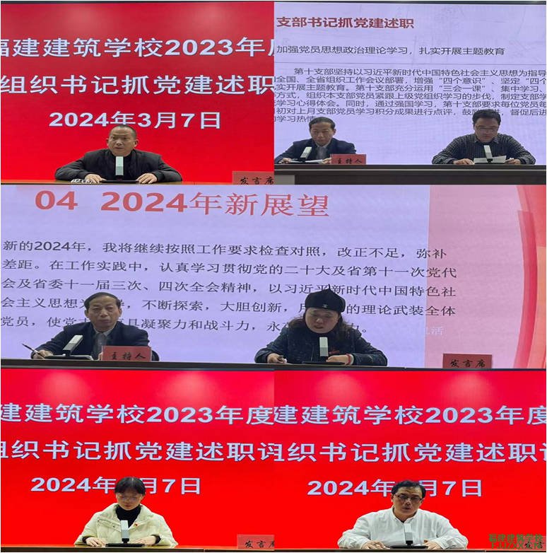 为贯彻落实习近平新时代中国特色社会主义思想和党的二十大精神,深入推进全面从严治党,全面落实各级党组织书记管党治党政治责任,按照省教育厅直属机关党委的要求和统一部署,3月7日下午,我校召开了2023年度基层党组织书记抓党建述职评议会。学校党委领导班子成员、各党支部书记、支部委员、中层干部及群众代表参加了会议。会议由校党委工作科主任丘永发主持。