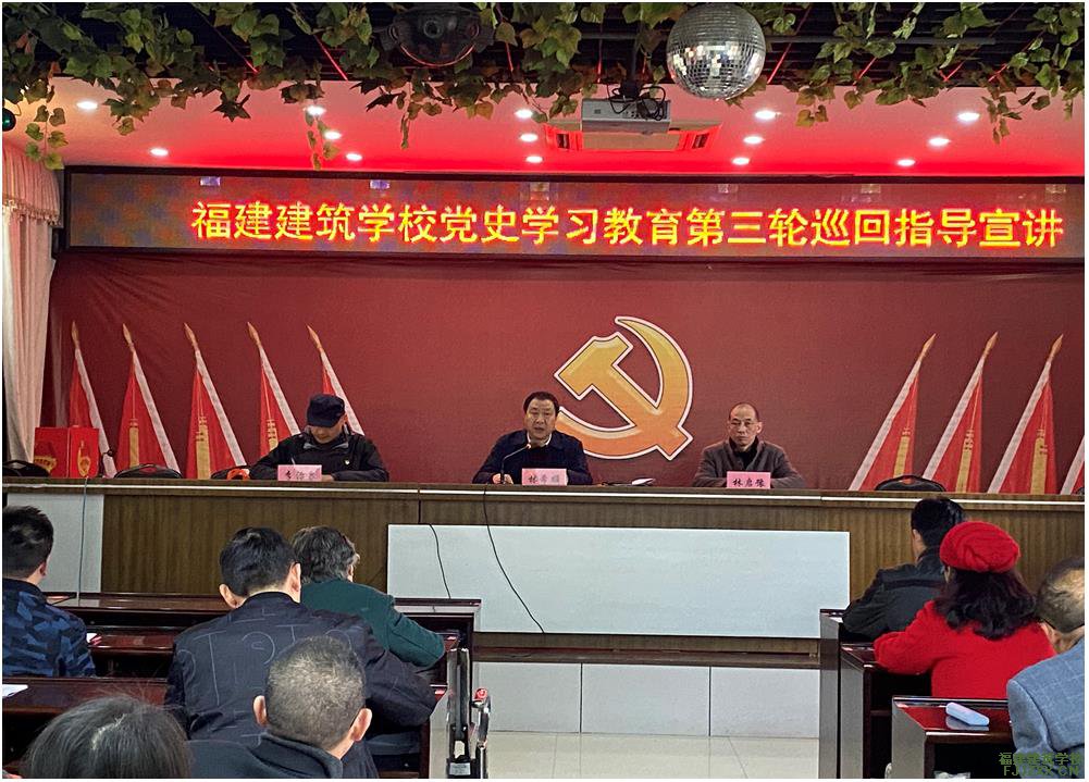 福建省教育厅直属机关党史学习教育巡回指导组的莅会宣讲,为我校的党史学习教育阶段性工作做了一个全面总结。2022年,学校将在巩固党史学习教育成果基础上,引领广大党员教职工深刻把握“两个确立”的决定性意义,增强“四个意识”、坚定“四个自信”、做到“两个维护”,不断开创学校工作新局面。