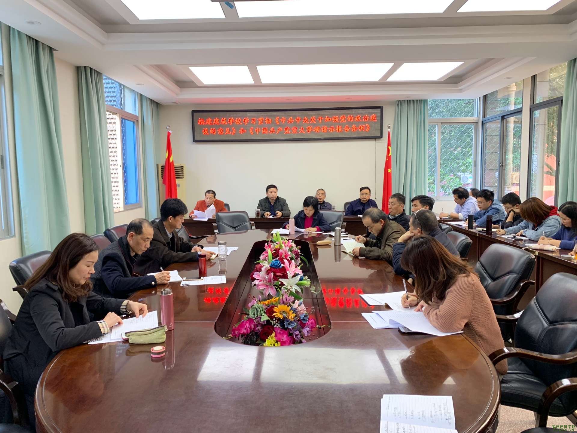 2019年3月14日下午,我校在办公楼二楼会议室召开党委中心组理论学习会议。会议围绕2019年全国、全省教育系统全面从严治党工作会议精神和《中共中央关于加强党的政治建设的意见》《中国共产党重大事项请示报告条例》文件精神进行研讨。学校领导、中层干部参加,会议由党委副书记、纪委书记田龙威同志主持。
